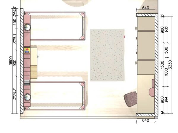 La cameretta Nascondino rosa Pitagora si compone con 2 letti, 2 comodini di cui uno con prese USB e ricarica wireless (disponibile anche con cassa acustica bluetouth), armadio Nascondino, scrittorio e menole casellario portalibri